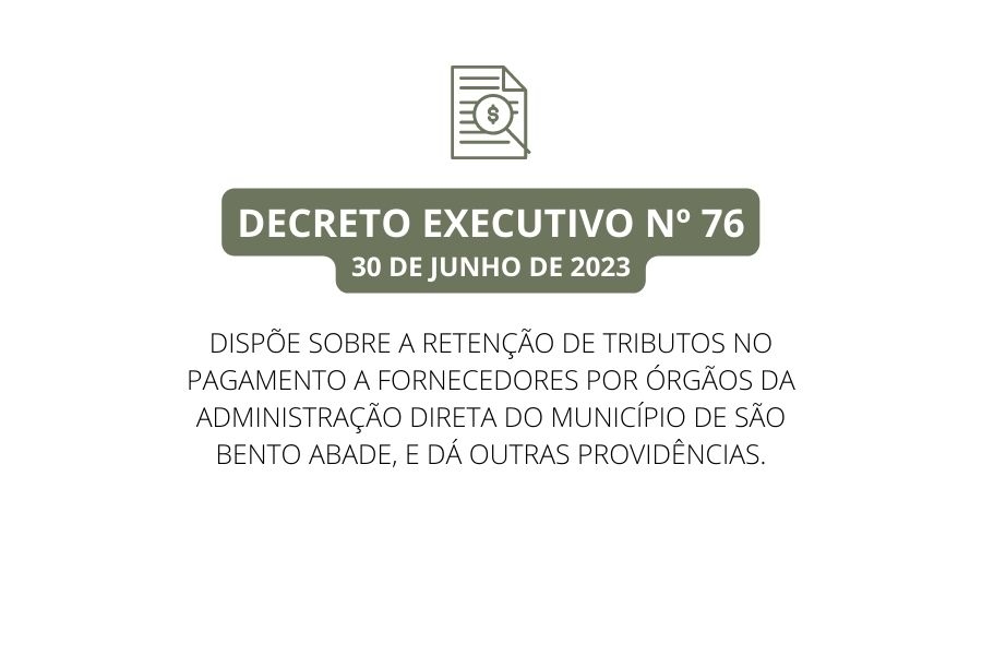 "Os órgãos da administração direta do Município de São Bento Abade, compreendendo esta, o Poder Executivo e o Poder Legislativo, ao efetuarem pagamento às pessoas físicas ou jurídicas pelo fornecimento de bens ou prestação de serviços em geral, inclusive obras de engenharia, ficam obrigados a proceder à retenção do Imposto sobre a Renda e Proventos de Qualquer Natureza - IR, com base na Instrução Normativa RFB nº 1.234, de 11 de janeiro de 2012, e alterações".